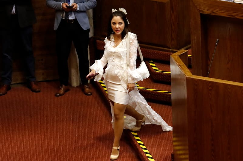 Vestida totalmente en blanco, desde su vestido, sus zapatos y su cartera, además de portar un velo muy parecido al de una novia, la diputada asistió a la sesión, donde incluso se dio el tiempo de hablar contra el aumento del presupuesto del Congreso en desmedro del presupuesto de salud, donde podrían ser mejor utilizados.