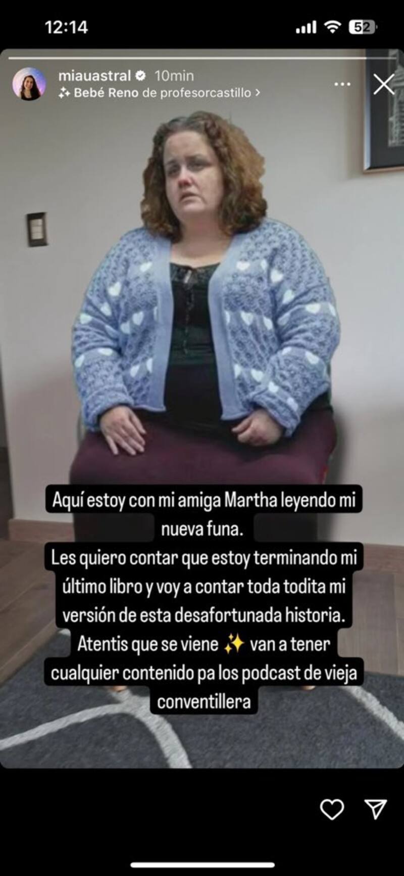 “Aquí estoy con mi amiga Martha leyendo mi nueva funa. Les quiero contar que estoy terminando mi último libro y voy a contar toda todita mi versión de esta desafortunada historia. Atentis que se viene. Van a tener cualquier contenido pa’ los podcast de vieja conventillera”, dijo.
