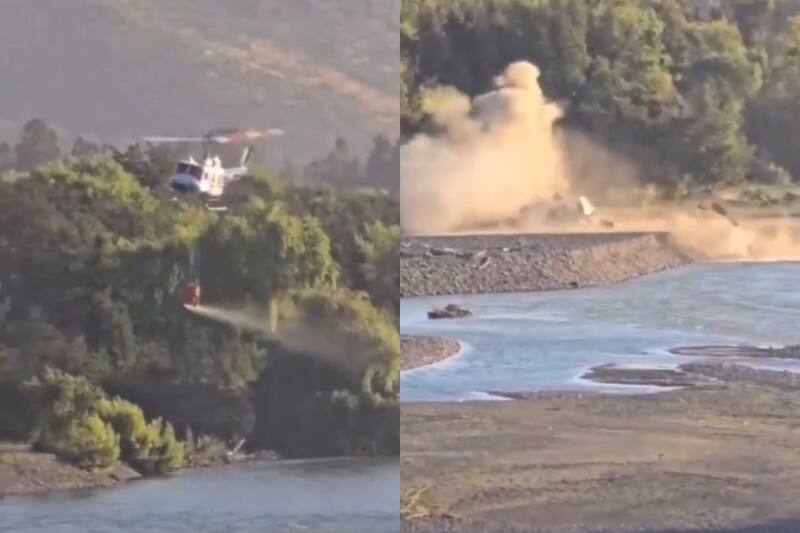 La caída del helicóptero, que trataba de sacar agua de un estero, fue registrada en un video, donde se observa cuando se rompe el rotor de la máquina.