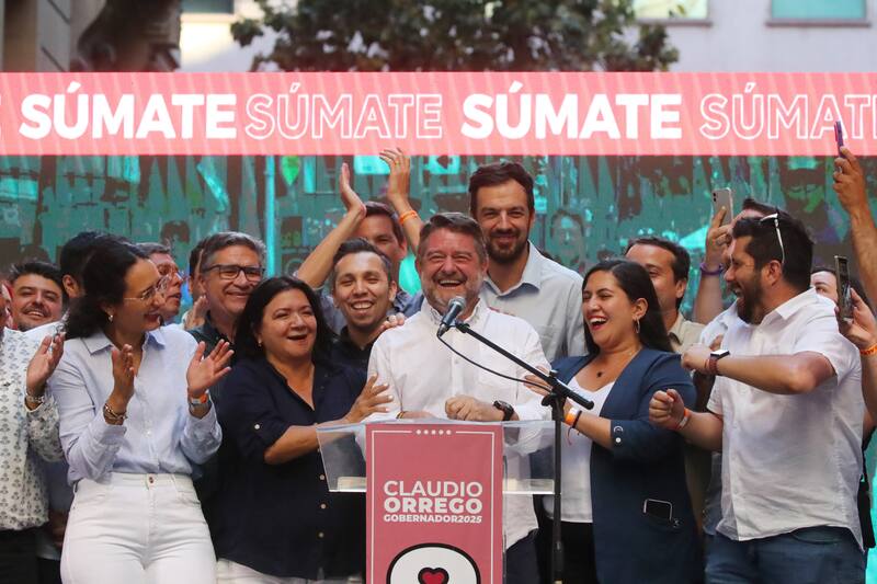 Tras ganar las elección por la gobernación de la Región Metropolitana, con más de un 54% de los votos con más del 55% de las mesas instaladas, Claudio Orrego celebró su victoria ante el candidato de RN, Francisco Orrego.