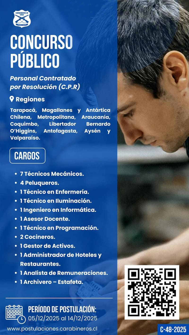 Los interesados deben postular hasta el 14 de diciembre de 2025, a través de la página www.carabineros.cl, sistema de postulaciones.