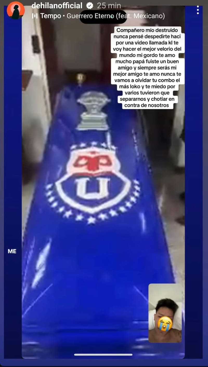 Todo esto acompañado de la canción “Guerrero Eterno” de Tempo, y con la siguiente reflexión: “Compañero mío destruido. Nunca pensé despedirte así por una videollamada, te voy a hacer el mejor velorio, mi gordo. Te amo mucho, papá, fuiste un buen amigo, y siempre serás mi mejor amigo. Nunca te vamos a olvidar, tu combo el más loco”.