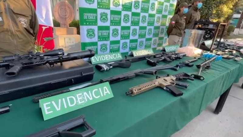 Carabineros detalló que en el operativo requisaron siete armas a fogueo, nueve armas de aire comprimido, un fusil marca Sten modelo MK2, una réplica de subfusil, una culata de escopeta, un catálogo de armas blancas y de fuego.