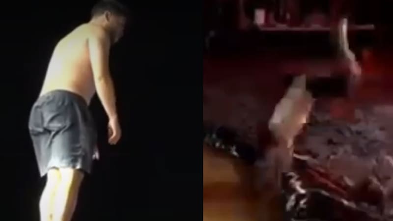 El sujeto se paró en lo más alto y luego se lanzó; sin embargo, cayó prácticamente de cabeza, quedando inmóvil y sumergido bajo el agua, teniendo que ser socorrido por el personal de seguridad.