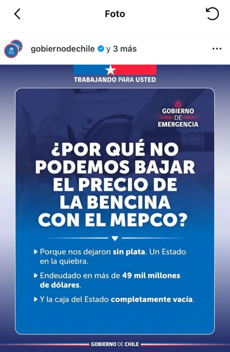 Según el documento, la solicitud se centra en contenidos asociados a medidas mencionadas en una imagen publicada en Instagram, en la cuenta del gobierno y de la vocería.