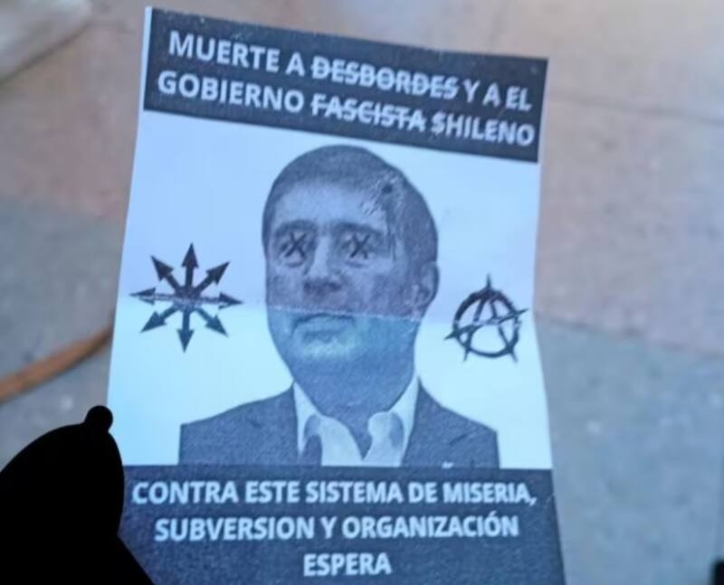 En las imágenes presentadas se ve un panfleto con el rostro de Desbordes herido de bala y la leyenda: “Muerte a Desbordes y al gobierno fascista chileno”.