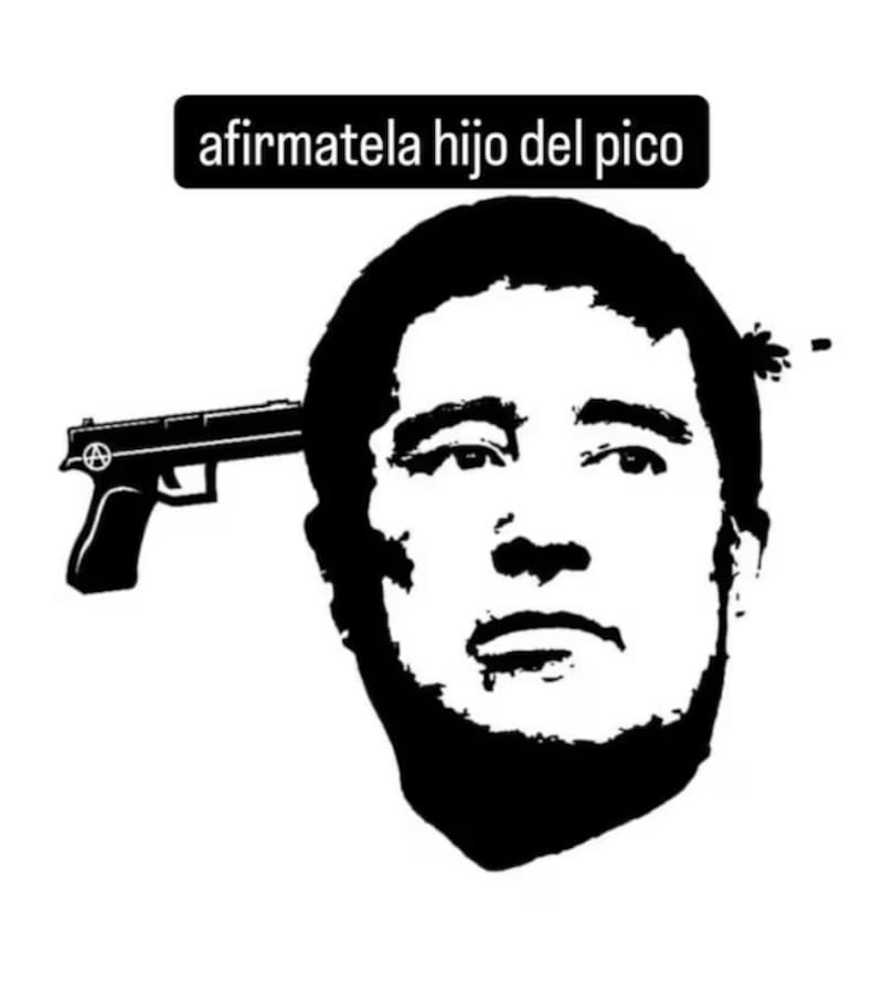 Una imagen similar, con el dibujo de una pistola, se difundió en redes sociales y también se vio junto a un lienzo instalado en un establecimiento. Todos estos elementos tendrían relación con el Día del Joven Combatiente del 29 de marzo pasado.