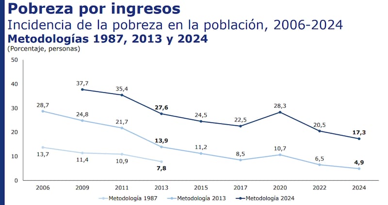 Otro ejemplo es que si en 2017 se hubiese utilizado la misma vara actual, la pobreza por ingresos habría sido de 22,5%.