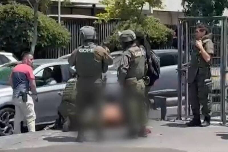 “Mantenemos un herido a bala con arma de fuego (...) de manera preliminar, por información de testigos, la víctima sería un limpiavidrios que se encontraba en el lugar y habría tenido un altercado con un automovilista”, detalló el mayor Nicolás Sepúlveda, de la 3a. Comisaría Santiago Central.