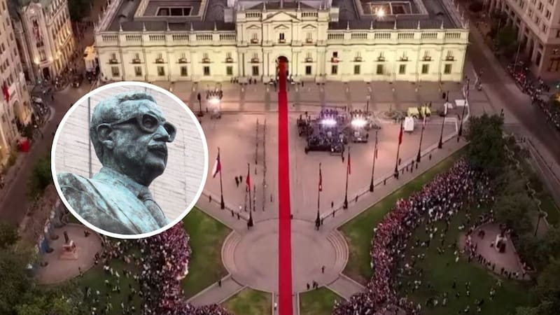 Pero un gran detalle llamó la atención: el escenario se levantó justo delante de la estatua de Salvador Allende Gossens, dejándola completamente oculta.