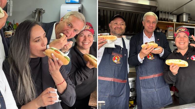 Allí, junto a los dueños del carrito, compartió del clásico sándwich chileno, pero con una variante, ya que a diferencia de una vienesa italiana, completa o dinámica, José Antonio Kast pudo probar una variante especial: el Completo Republicano.