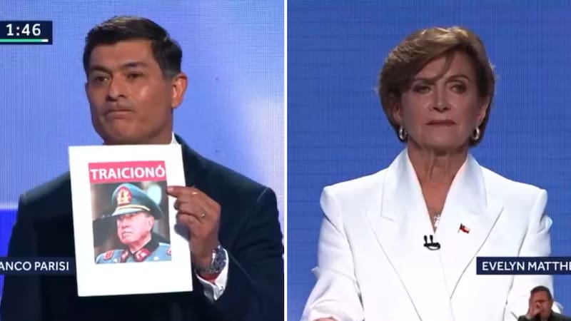 Durante el debate presidencial, y en su momento de interpelar a la candidata de Chile Vamos, Franco Parisi mostró fotos del expresidente Sebastián Piñera y del dictador Augusto Pinochet con la palabra “traicionó”.