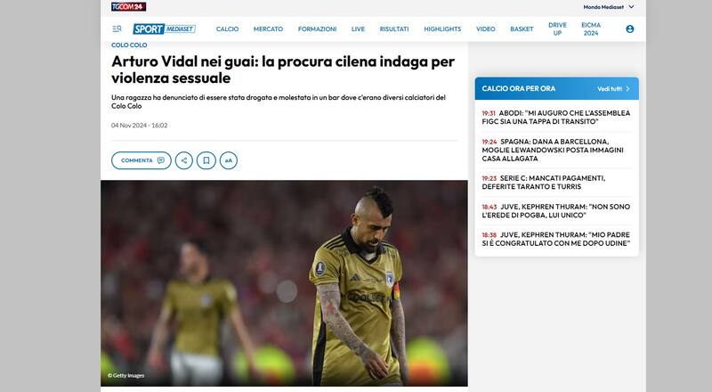 “Arturo Vidal en aprietos: lo investigan en Chile por violencia sexual”, tituló el medio italiano Sports Mediaset.