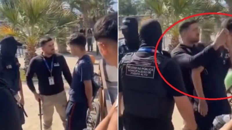 Tal como se ve en un video que se viralizó en redes sociales, un funcionario encargado de la seguridad se enfrenta con un joven en la intersección de avenida Concha y Toro con San Carlos.