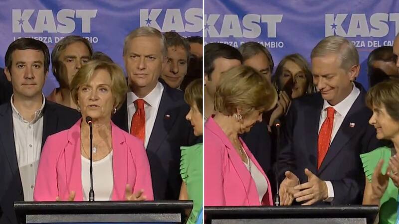Es más, hubo un gesto que llamó particularmente la atención: cuando Matthei terminó su discurso y dio el lugar a Kast, con un movimiento de su mano y con un semblante muy serio.