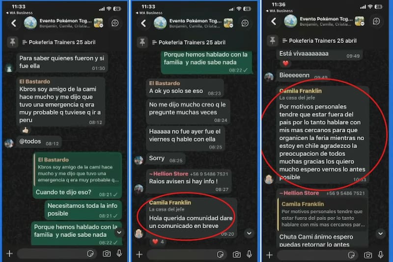 Minutos después, desde el teléfono de Camila escribieron “un comunicado”: “Por motivos personales tendré que estar fuera del país, por lo tanto hablaré con mis más cercanos para que organicen la feria mientras no estoy en Chile”, decía.