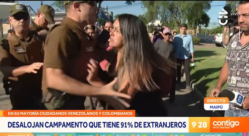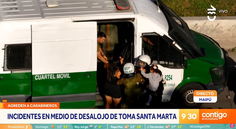 Una escandalosa escena se vivió en medio del desalojo de la toma Santa Marta —que dataría de hace unos tres años—, en Maipú, cuando una mujer, superada ante la situación, encaró a las autoridades y agredió a funcionarios de Carabineros, por lo que terminó detenida.