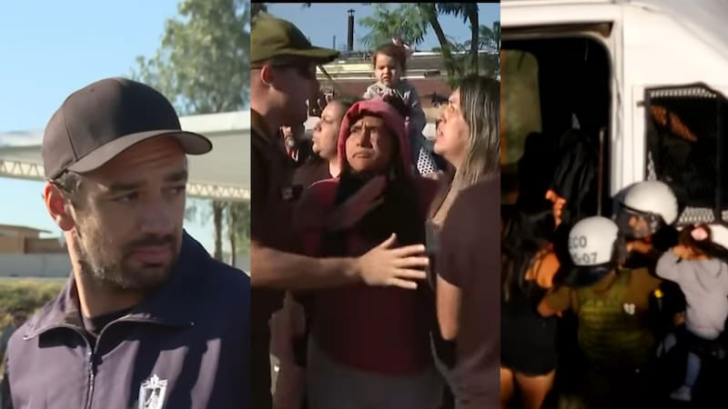 Luego, mientras la mujer era subida al vehículo, apareció otra dama cargando a una menor de edad, la que le daba golpecitos en la espalda a un funcionario policial. “Le están pidiendo que, por favor, deje a la niña en otro sector”, relató la reportera.