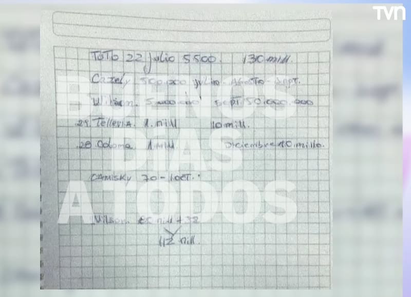 En efecto, Kaminski aparece anotado en el cuaderno de “deudores” de la víctima; listado que está en manos de Fiscalía y que mostraron en pantalla en el matinal de TVN.