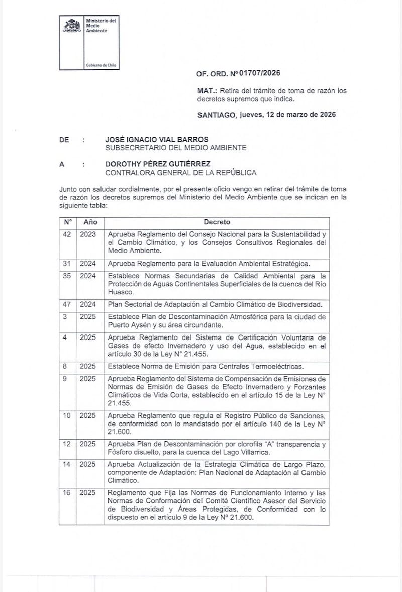 El Ministerio del Medio Ambiente decidió retirar de Contraloría la tramitación de 43 decretos supremos impulsados por el gobierno de Gabriel Boric.