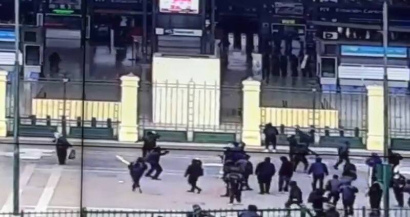 Por Diego RamírezFuertes imágenes en la Alameda: encapuchados atacan la Estación Central con personas en su interior