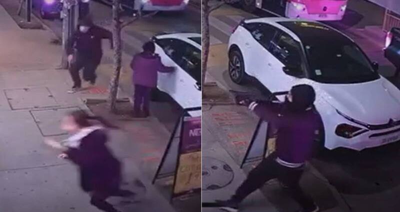 Registro muestra la rápida reacción del menor, quien logró ponerse a salvo. No así la mujer.