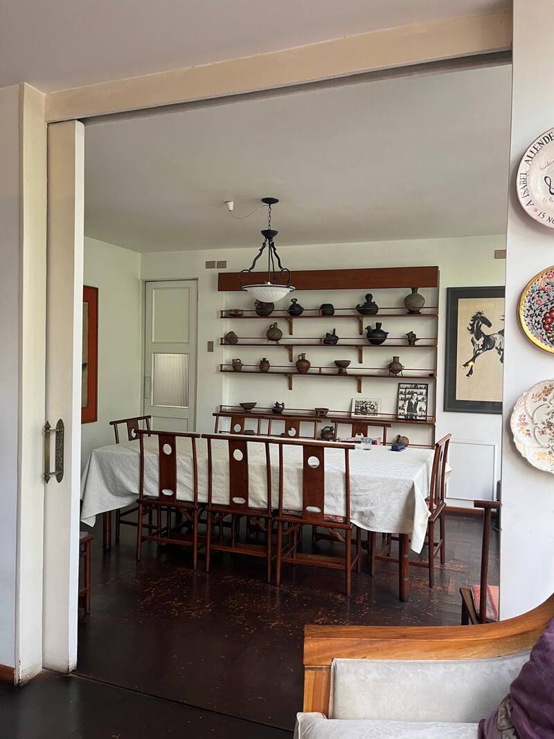 El comedor, por ejemplo, fue preparado en aquellos años por el célebre mueblista nacional Carlos Landea y, se puede constatar en imágenes, todavía honra a su bosquejo. Los sillones y la larga mesa de centro donde comían los Allende-Bussi y atendían a sus invitados son los de antes. Los de siempre. Y en una de las paredes se conserva intacto el cuadro de la Tencha, Hortensia Bussi, hecho por el pintor ecuatoriano Oswaldo Aparicio Guayasamín. En el patio aguarda una pequeña mesa de vidrio rodeada de sillas, los árboles y unas pocas plantas, como de costumbre.