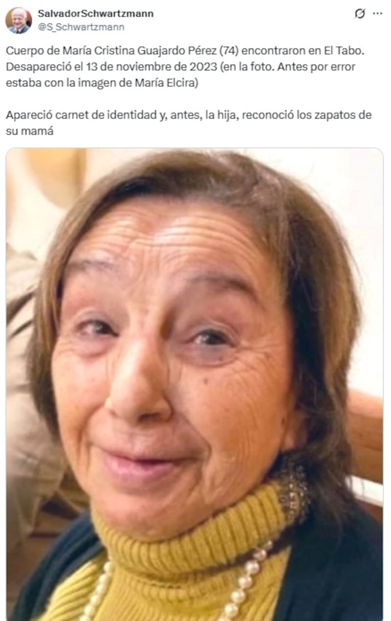 La confusión fue total entre quienes siguen el caso de su abuela, quien fue vista por última vez en mayo de 2024. Y cómo no, si la noticia del supuesto hallazgo también fue difundida por un reconocido periodista en X (ex Twitter). ¿Lo peor? Utilizaron una foto de la mujer de 86 años.