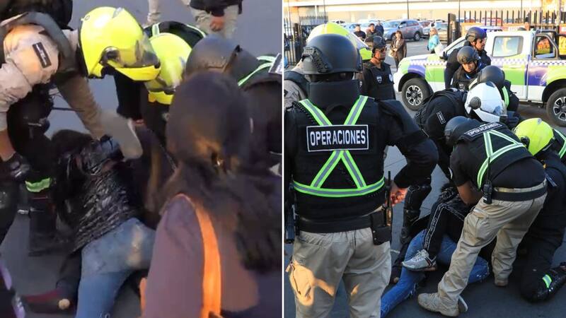 Video muestra violento encontrón entre comerciantes irregulares y funcionarios de seguridad municipal.