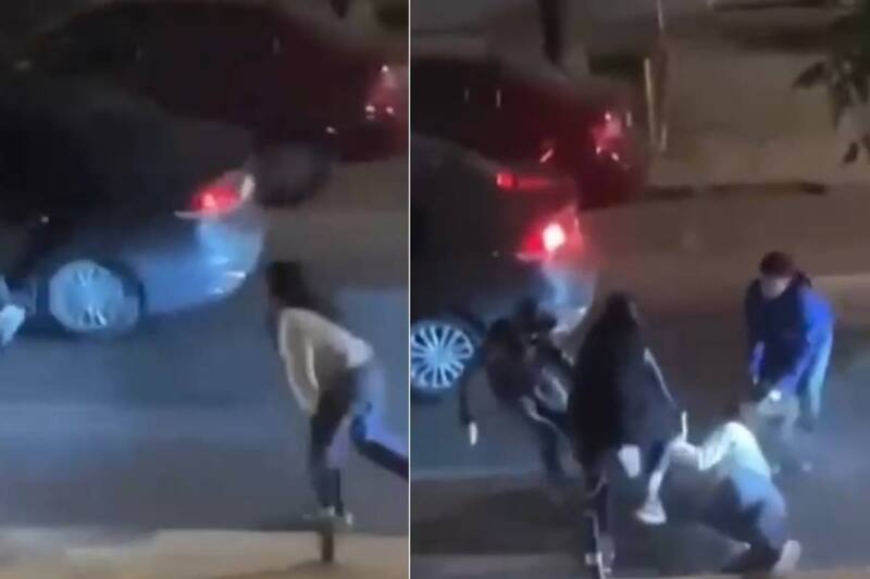 En las imágenes se puede ver cómo ver cómo un grupo de tres delincuentes arrastran y patean a la víctima en el suelo, en un feroz intento de apropiarse de sus pertenencias.