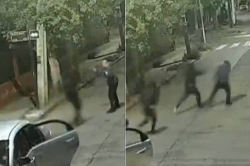 Tal como quedó registrado por una cámara de vigilancia, al menos tres desconocidos descendieron de un auto y comenzaron a intimidar al vecino.