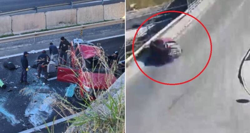 Tal como se puede ver en las imágenes, el conductor de una camioneta perdió el control del automóvil, rompió las barreras de contención y se precipitó desde una altura considerable.