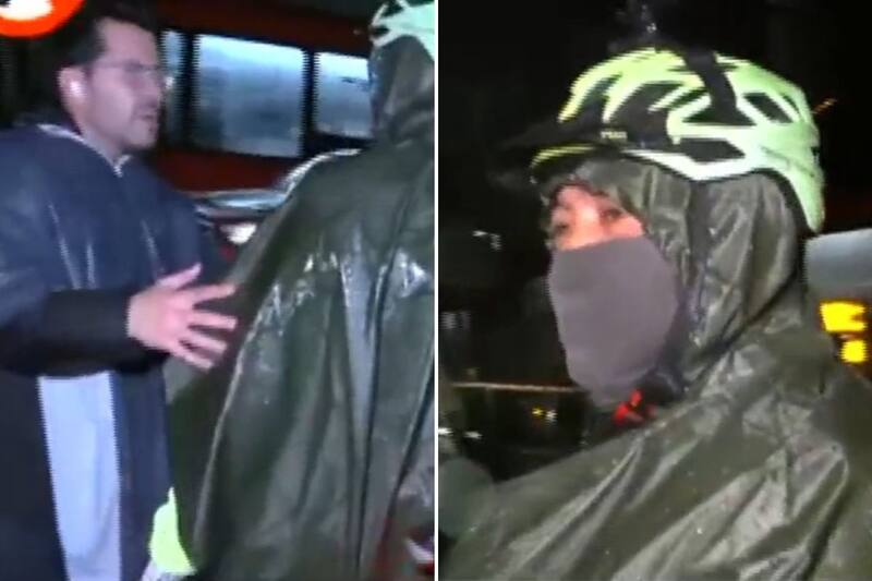 En eso estaba cuando se topó con un vecino forrado en plástico que se atrevió a salir en bicicleta desde su casa, pese a la caída de árboles y otros peligros en las calles.
