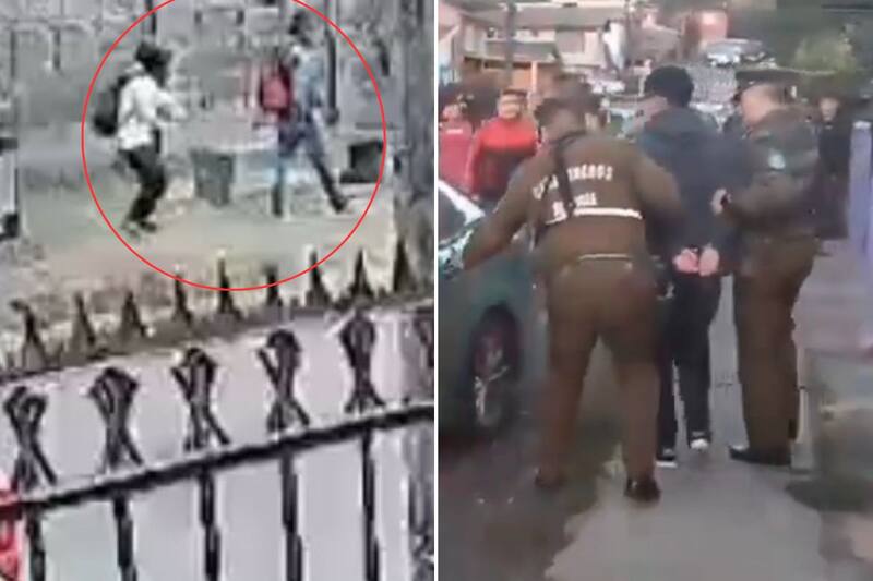 Tal como se ve en la grabación de una cámara de seguridad, el sujeto corrió y atacó por la espalda a quien resultó ser su suegro, reportó Radio Bío Bío.