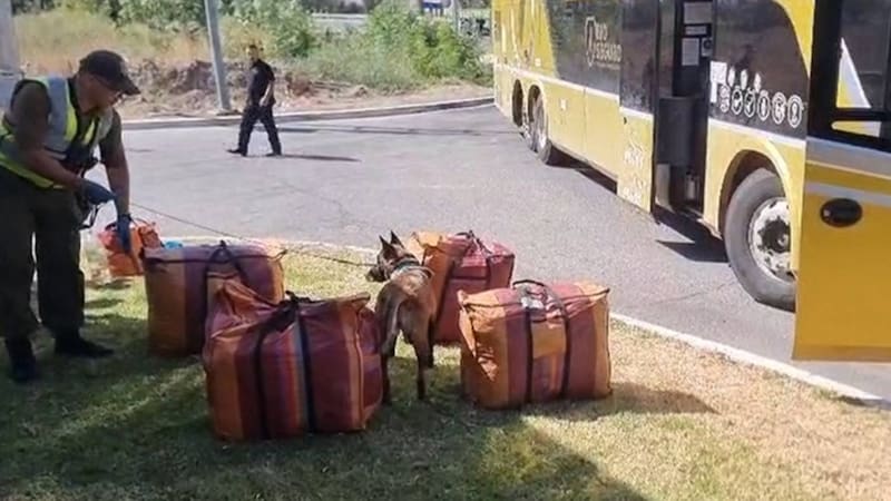 “Durante el control, el ejemplar canino Ram realizó un circuito de búsqueda al interior del bus y posteriormente en el maletero, efectuando una marcación positiva en bolsos”, añadió.