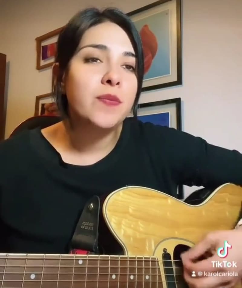 Sí, guitarreo, me encanta guitarrear, es parte de mis pasatiempos. A veces estoy súper cansada en la noche, pero necesito como despejar la cabeza y mi guitarra siempre está ahí esperando, la tengo y es como que la quiero y la tengo descuidada a veces y no le he cambiado cuerdas y no la he mandado a alinear, pero me encanta tocar guitarra, es algo que disfruto mucho, lo hago desde muy chica, realmente lo empecé a hacer como a los 13 años, aprendí sola con un Icarito. Yo juntaba los Icarito que venían como en La Tercera y me acuerdo que venía un cancionero, venían varias canciones, pero al mismo tiempo también venía como un curso de guitarra, entonces como las posturas de las notas así aprendí a tocar guitarra y me encanta tocar guitarra, así que cada vez que puedo tomo mi guitarra y guitarreo ahí. Hasta he publicado canciones guitarreando, cuando encuentro que me salen más o menos bien, digo ya voy a compartir un poco de mi pasatiempo. De hecho, a veces me ha pasado que cuando subo un video me empiezan a pedir así como canciones, canta está, no sé, Karol canta esta otra, no sé qué, tengo varias pendientes y ahí voy a tocar.