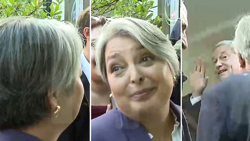 Cuando ya se retiraban, una cámara de Canal 13 captó cuando Kast pasó por el costado de Jara, sin despedirse.