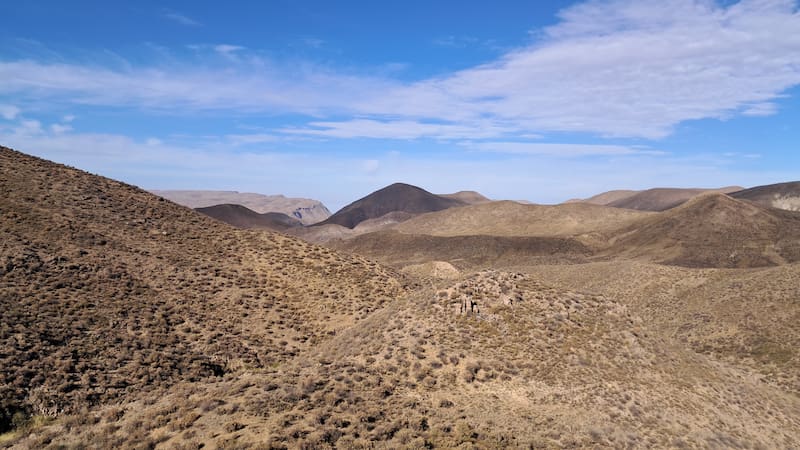 Por aquí también andan guanacos, que no hemos visto, pero sí hemos encontrado huellas y otros rastros que los delatan. Pero aquí “la población es muy baja”, según el funcionario público, a causa de una oleada de sarna que habría casi provocado una extinción local hace unos años. Muchos acá hablan de la desaparición del gran camélido.