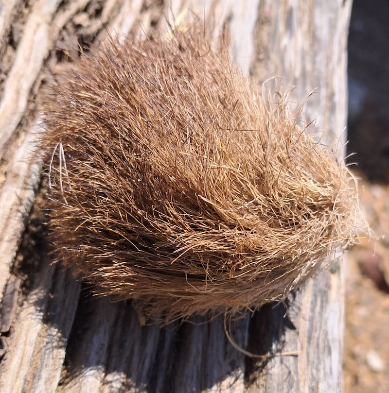 En la primera salida, al desviarnos del camino, donde en la orilla crecen las flores moradas de los lupinos (Lupinus oreophilus) y, empezando a subir una colina, aparecen los “gatitos” (Cumulopuntia sphaerica), una cactus que con sus espinas se separan en distintas partes que se adosan a la ropa, e incluso “escalan” por lo pantalones mientras uno camina, pasando de una pierna a otra. Parecieran moverse con propia voluntad. Y pucha que pinchan, hasta que logras quitártelas, y ojalá sin los dedos porque también tienen unas espinitas como astillas, que apenas se ven al atravesar la piel.