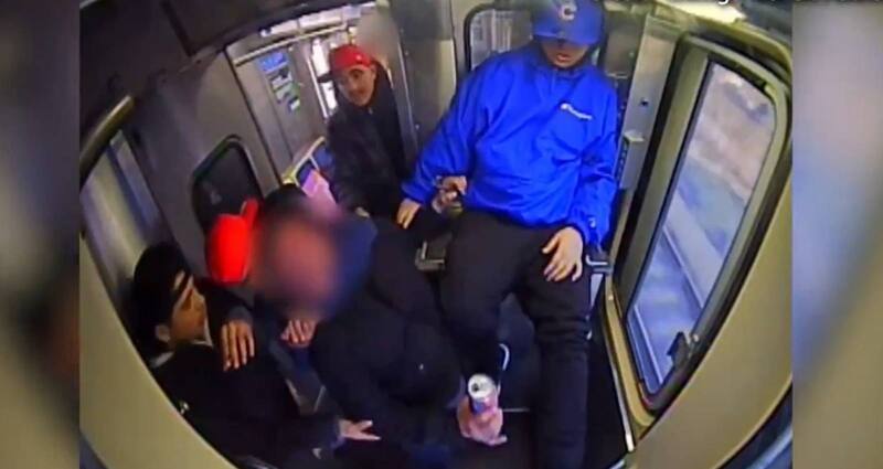 El video, tomado desde el interior de un tren de la Autoridad de Tránsito de Chicago (CTA), muestra a dos de los cuatro sospechosos conversando y entablando una supuesta amistad con la víctima.