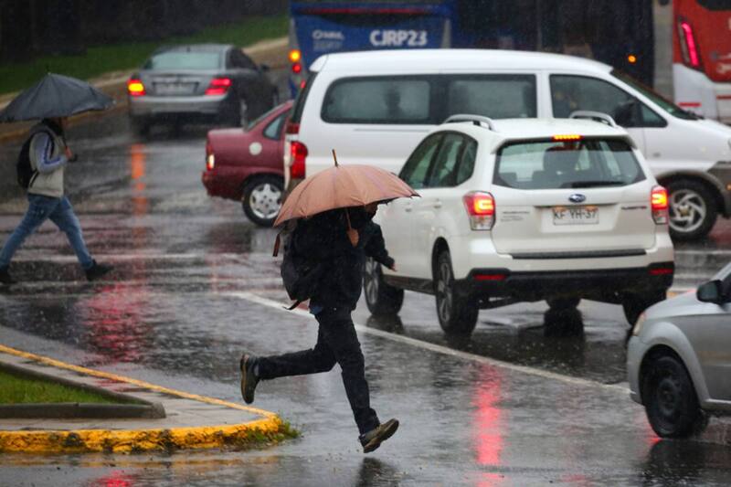 El meteorólogo de Canal 13, Gianfranco Marcone confirmó que ya han caído 8,2 milímetros de agua en la capital y advirtió: “Chubascos toda la mañana en Santiago. Será una jornada muy otoñal y al término del día. Será un día para abrigarse y a salir con paraguas y botas”.