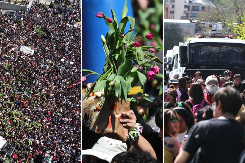 Carabineros de Control de Orden Público llegó al lugar con un carro lanza aguas para intentar controlar la situación.
