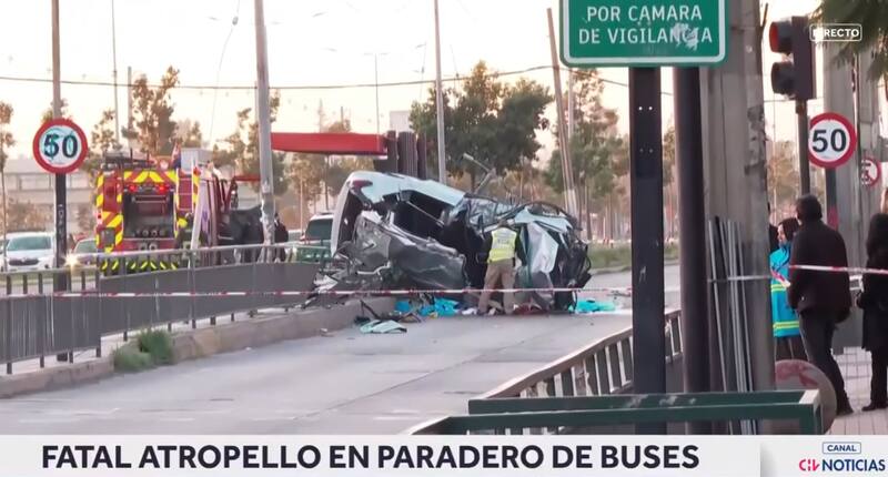 Producto del fuerte impacto, el auto de la pareja volcó y embistió un paradero de buses donde habpía pasajeros esperando locomoción colectiva. Dos de los peatones murieron en el lugar.