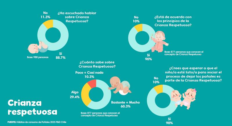 “Hoy, el 89% de los padres han escuchado sobre el término ‘Crianza Respetuosa’ y el 90% de ellos asocia el término con esperar a que el niño esté listo para dejar el pañal”, señala Daniela Zúñiga, directora de Data & Insights de P&G.