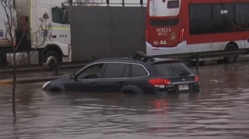 La mujer se dirigía a su trabajo desde Calera de Tango y pasaba por la comuna de La Cisterna, cuando su auto comenzó a fundirse con el agua de la lluvia. La calle estaba completamente anegada por el temporal que llegó a Santiago y ella, sin saber qué hacer con el vehículo, se quedó sentada.