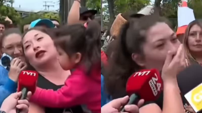 La mujer manifestó su reclamo: “Llevamos mucho rato esperando y la guagua pesa 20 kilos. Por favor, podrían apurar un poquito la causa”, lanzó al periodista.