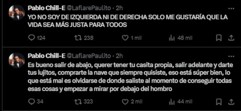 En ese contexto, el artista urbano Pablo Chill-E aprovechó sus redes para dirigirse a sus colegas que votarán por José Antonio Kast y Johannes Kaiser, candidatos de extrema derecha.