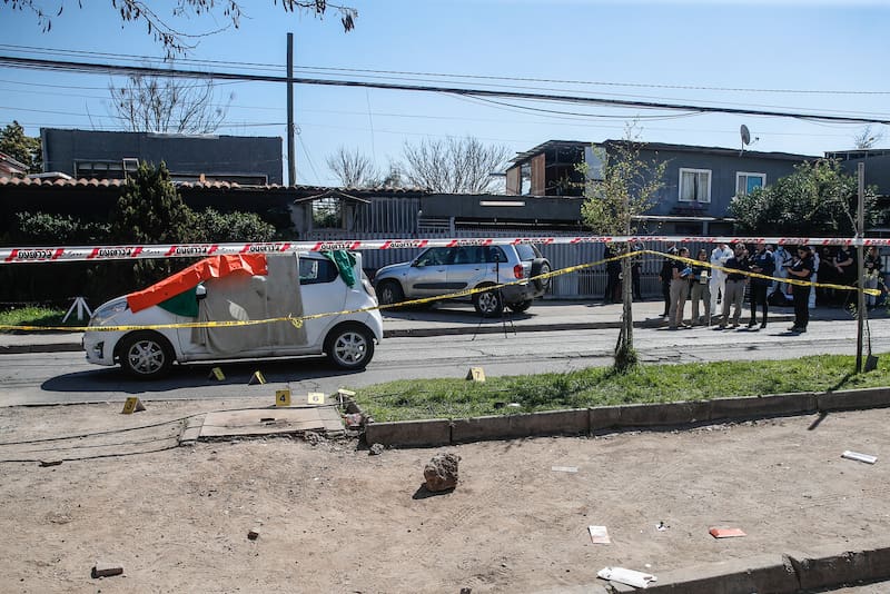 Según constató un equipo de Meganoticias en el lugar, al menos dos de los disparos fueron a dar en otro vehículo, que estaba estacionado en la misma calle y nada tendría que ver con el presunto objetivo de los delincuentes.