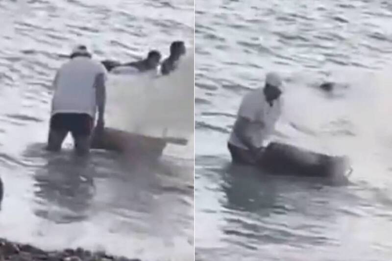 Según lo que se puede ver en el registro, un sujeto no encontró nada mejor que apagar el fuego de una parrilla en playa de Iquique.