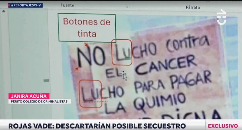 Un reciente reportaje de CHV Noticias cotejó el tipo de letra que fue encontrada en los escritos que estaban en el cuerpo de Rodrigo Rojas Vade y la de los de los carteles que él mismo escribió a fines de 2019, en el marco de la “revuelta”.